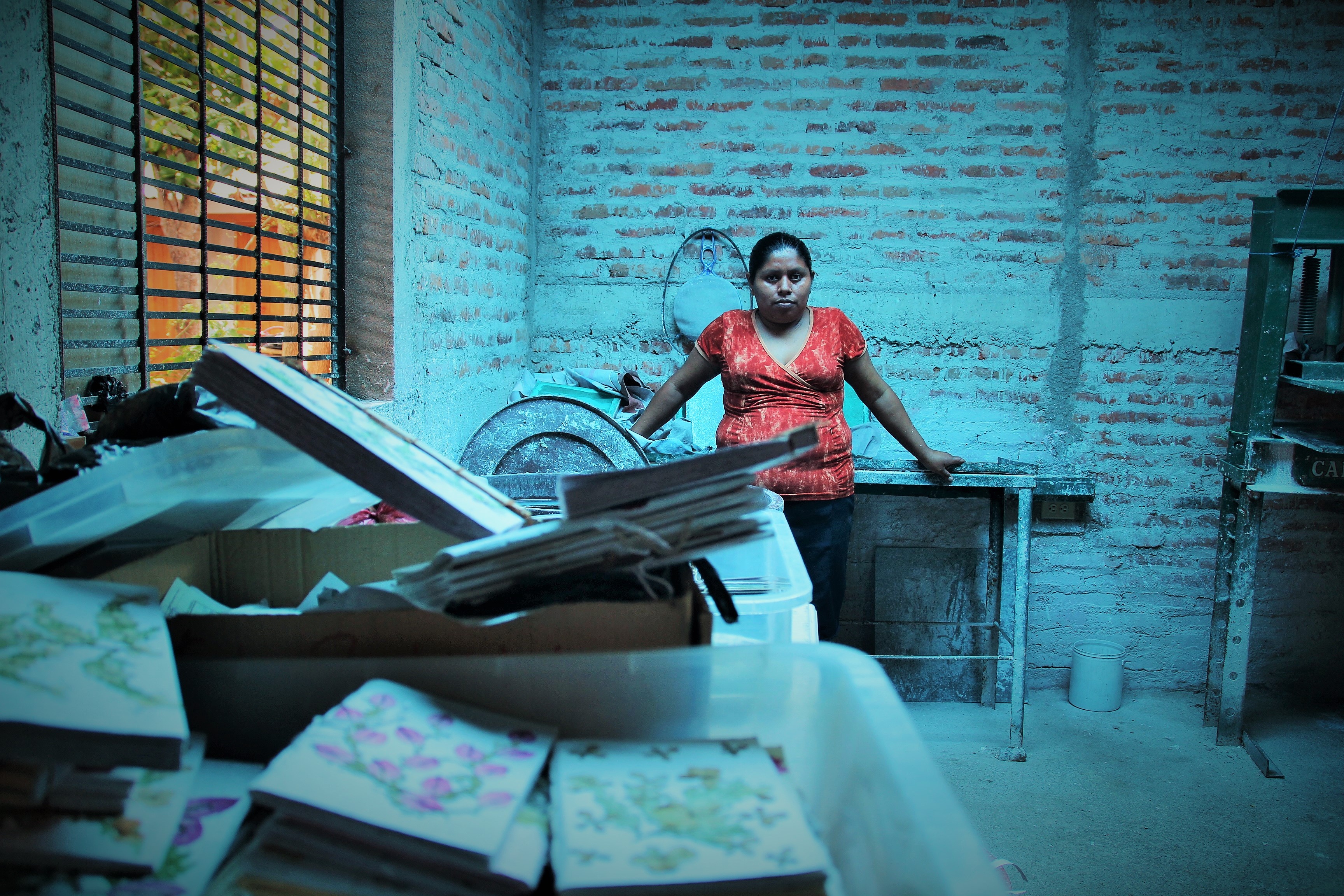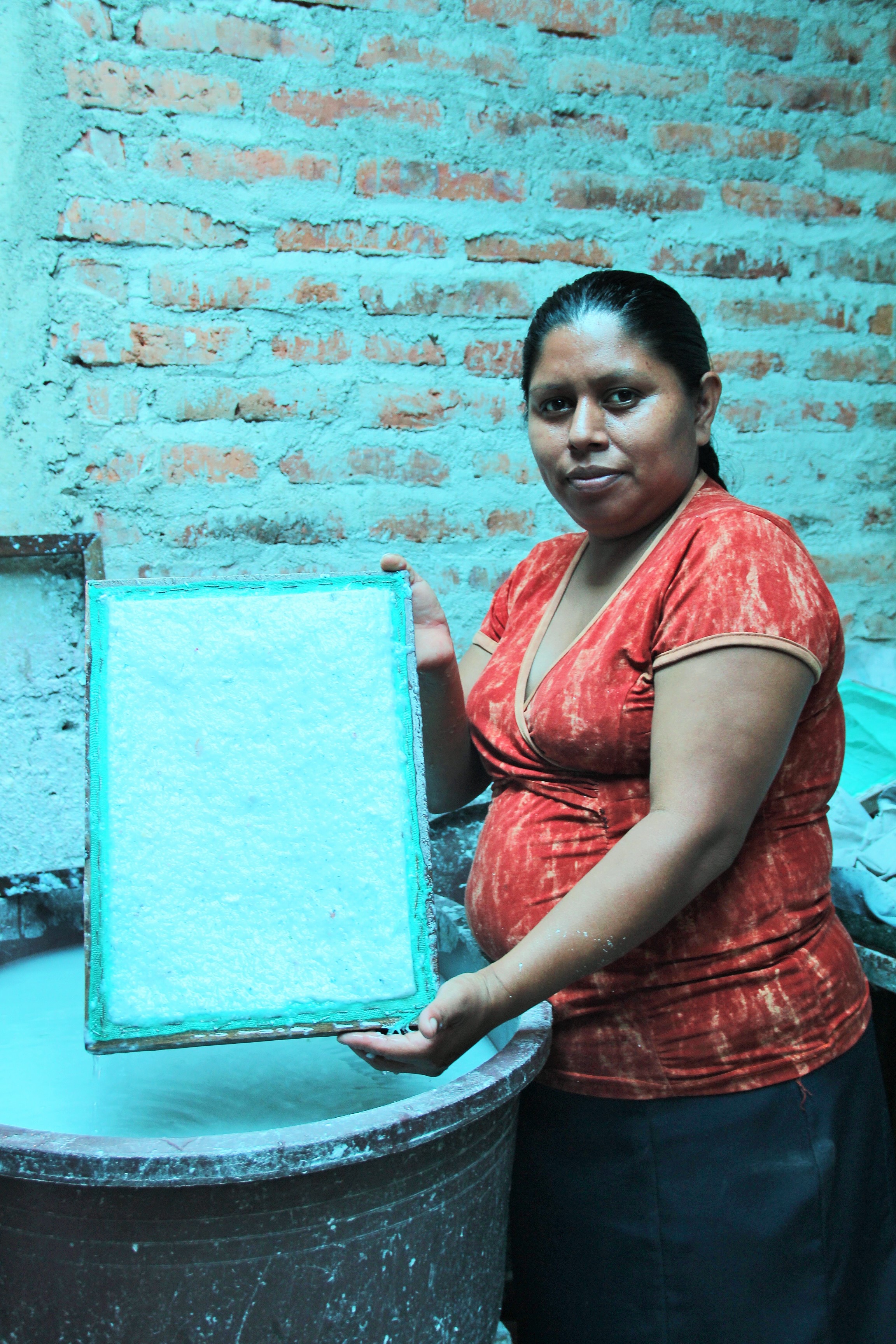 Les familles rurales n’ont souvent qu’un revenu précaire, les femmes restant le plus souvent s’occuper du foyer et des enfants. Il est primordial que ces femmes travaillent pour augmenter le revenu familial mais aussi pour ne plus dépendre de leur mari. C’est ce que fait Jessenia, 34 ans, que Viviane me présente au village de San Ramon. Jessenia est membre fondatrice de l’entreprise Empresa de Papel Reciclaje La Pita (Entreprise de papier recyclé La Pita), du nom de la communauté dont elle fait partie.